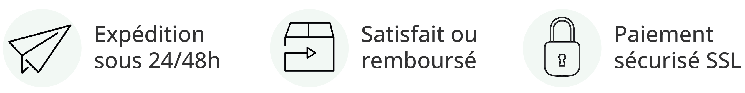 ◈ Livraison suivie offerte : Pour toute commande passée depuis la France métropolitaine, notre livraison suivie est gratuite à partir de 25 euros d'achat. Nos délais moyens de livraison sont compris entre 5 et 12 jours ouvrés. Suivez votre commande du départ des stocks de nos fournisseurs jusqu'à votre adresse de livraison directement sur notre plateforme de suivi.